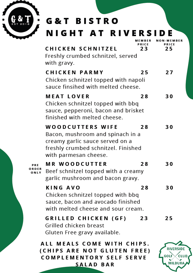 G&T Bistro Night 14th June - Preorder your meals today